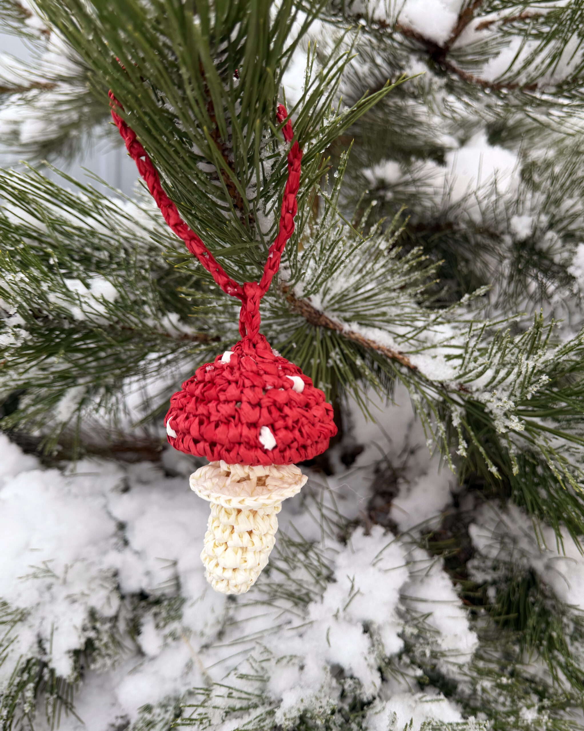Musmirė nerta iš rafijos, gražiai papuoš jūsų krepšelį, rankinę ar kalėdinę eglutę. Suteiks žaismingumo ir individualumo jūsų žiemos deriniams.